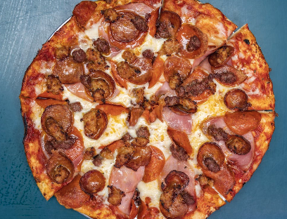 1000 Island dressing, American cheese, cheddar cheese, bacon, beef, onion, topped with cold lettuce, tomato, and pickle.
